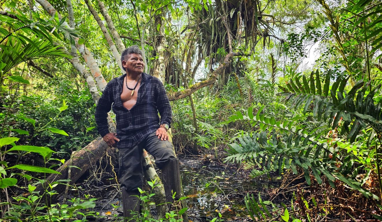Cacique Nelson, da reserva indigena Guarani Três Palmeiras, em Aracruz-ES apresentou a área da comunidade para a equipe do Instituto Últimos Refúgios. Foto: Leonardo Merçon / Instituto Últimos Refúgios.